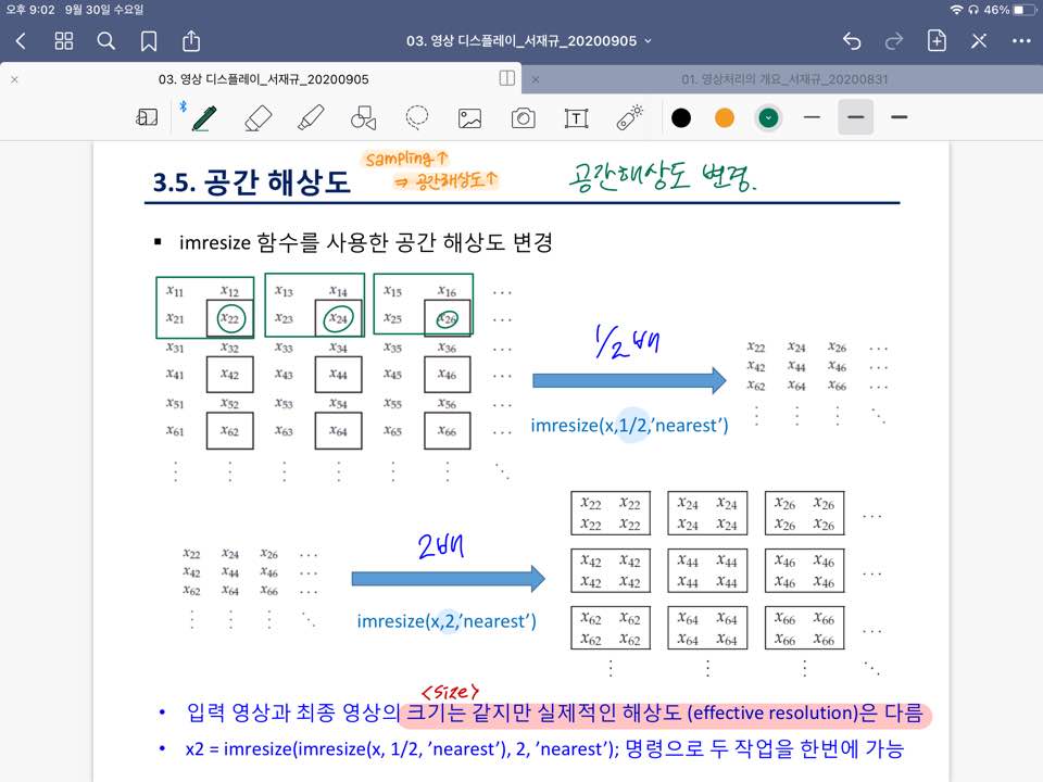 - imresize 함수를 사용한 공간 해상도 변경