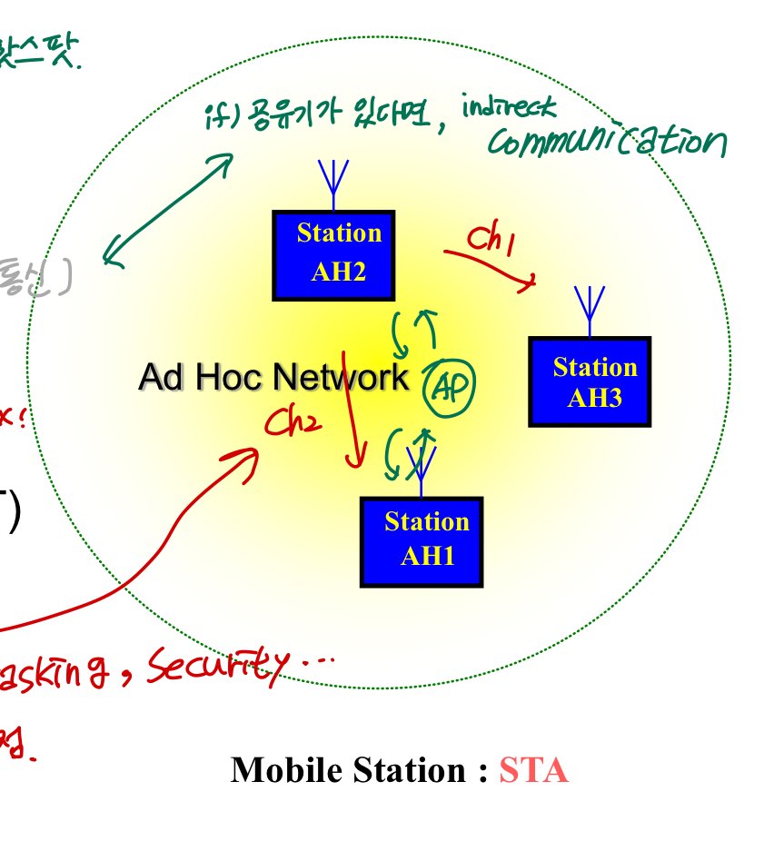 Ad hoc ( ex. 핫스팟 : 스마트폰 --> 스마트폰 )