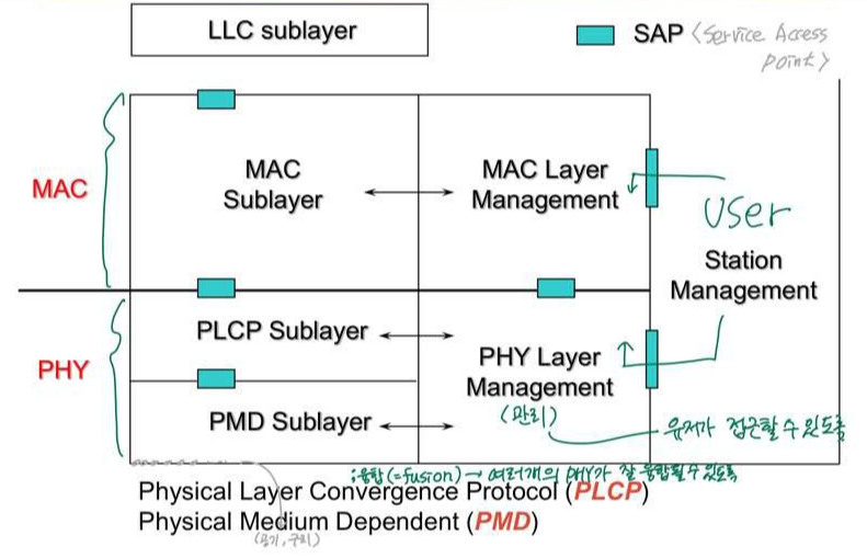 1. PLCP (Physical layer convergence protocol) sublayer : 여러개의 PHY들이 잘 융합될 수 있도록 함
