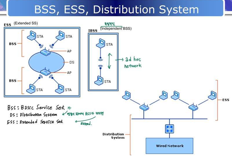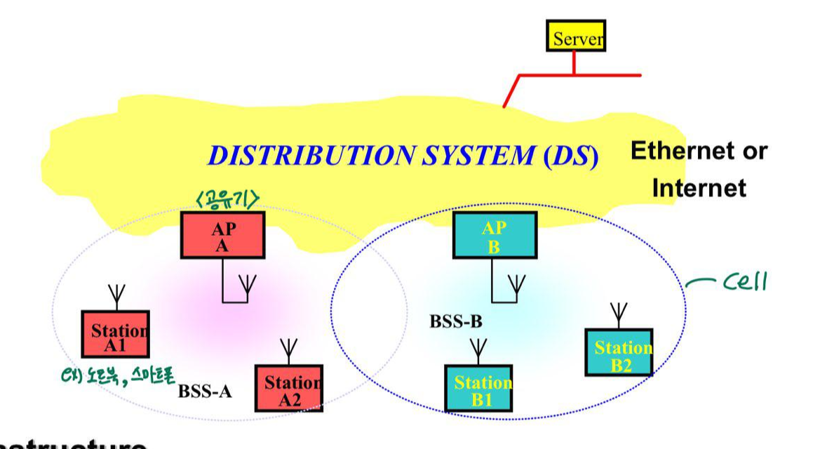- Support roaming - IAPP(Inter Access Point Protocol) IEEE 802.11f --> 보통 한 인프라 내에서 사용 (ex. 세종대 내에서는 어딜 가든 Sejong wifi 사용)