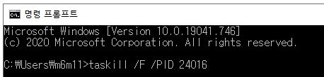- taskkill /F /PID (해당 PID 번호 입력)
