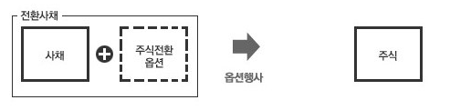 처음에 발행할 때는 회사채와 똑같지만 주식전환권을 행사할 수 있는 시간이 되면,