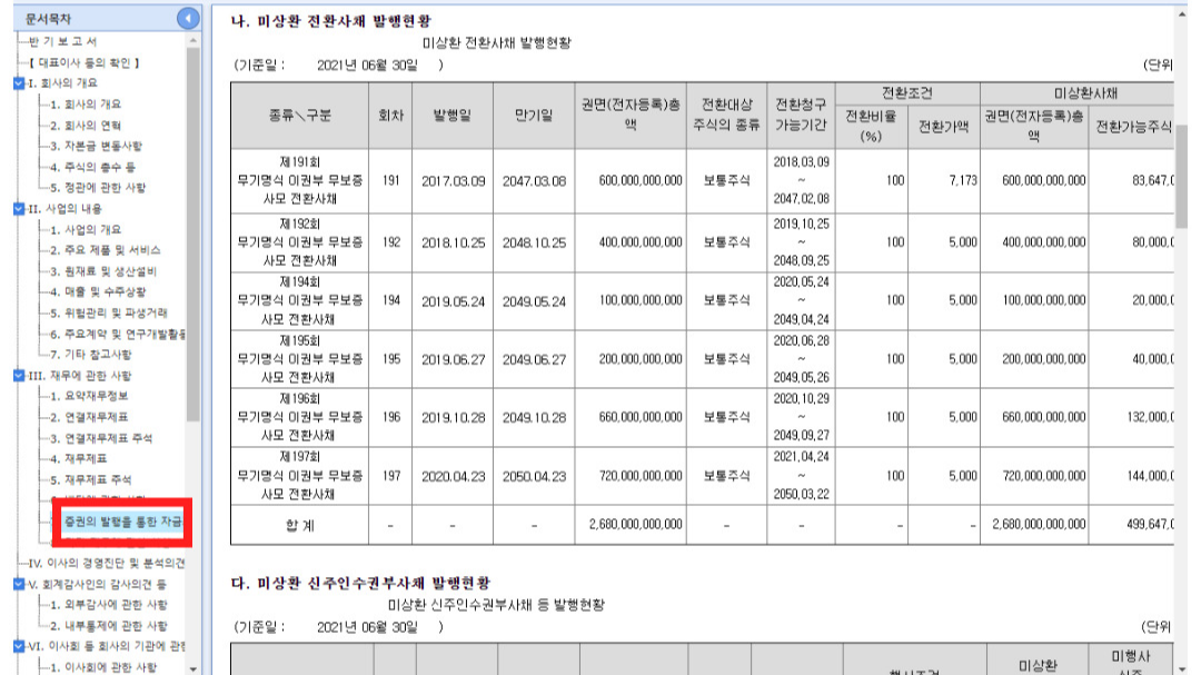 하지만, 보통은 단기적으로 악영향을 주니 전환사채를 자주 발행하는 기업은 투자에서 배제하는 것이 좋습니다.
