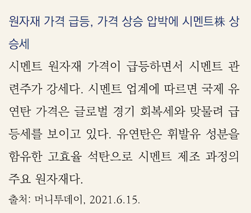 이 로직은 시멘트 관련주에 악재로 반영될 것처럼 보인다.