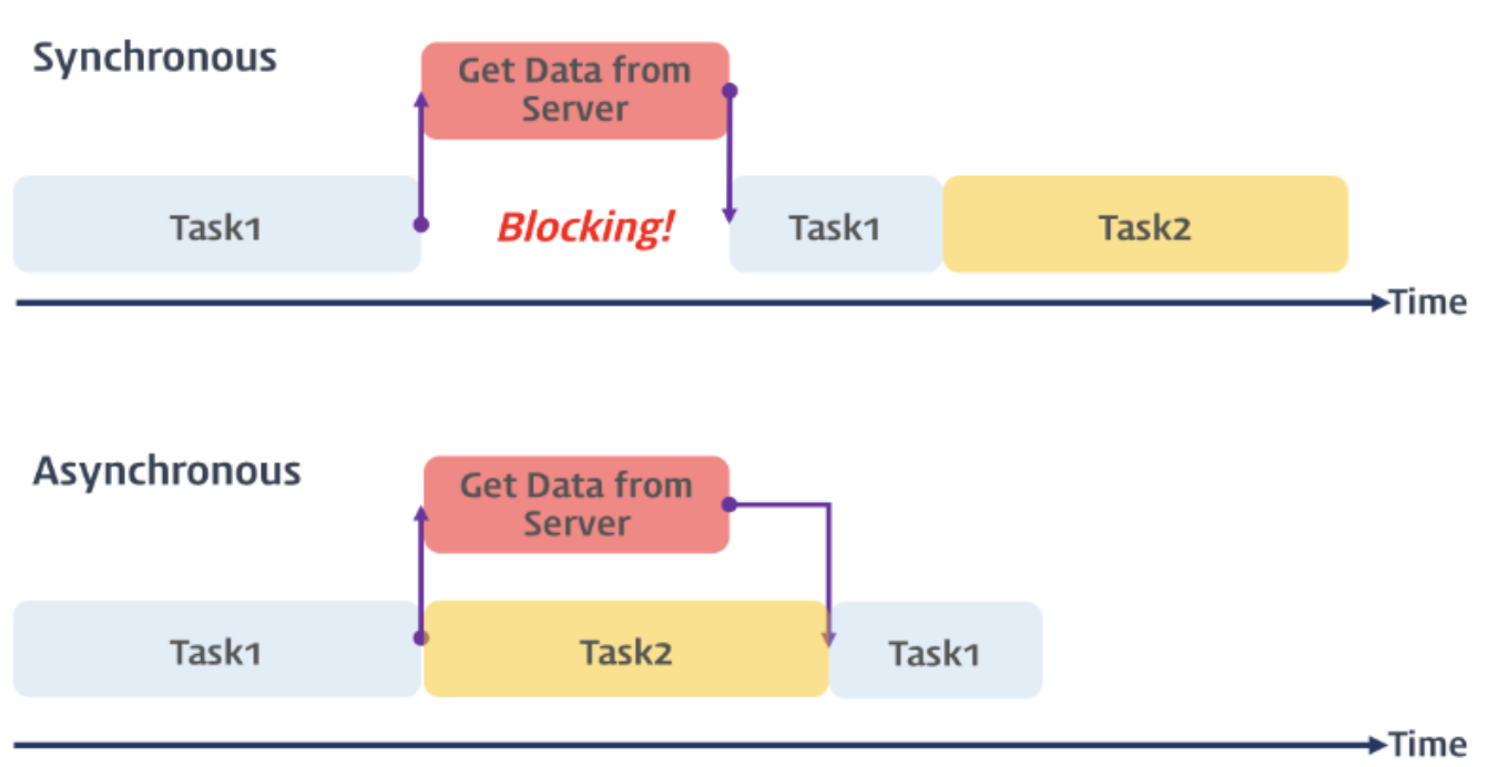 비동기 프로그래밍은 이러한 대기 시간을 기다리면서 낭비하는 것이 아니라, 다른 처리를 할 수 있도록 한다.