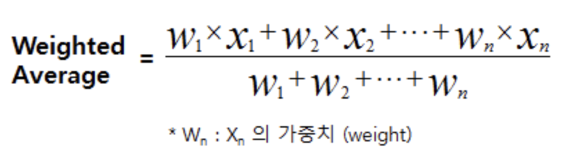 가중치를 곱한 값의 총합을 가중치의 총합으로 나눈 값